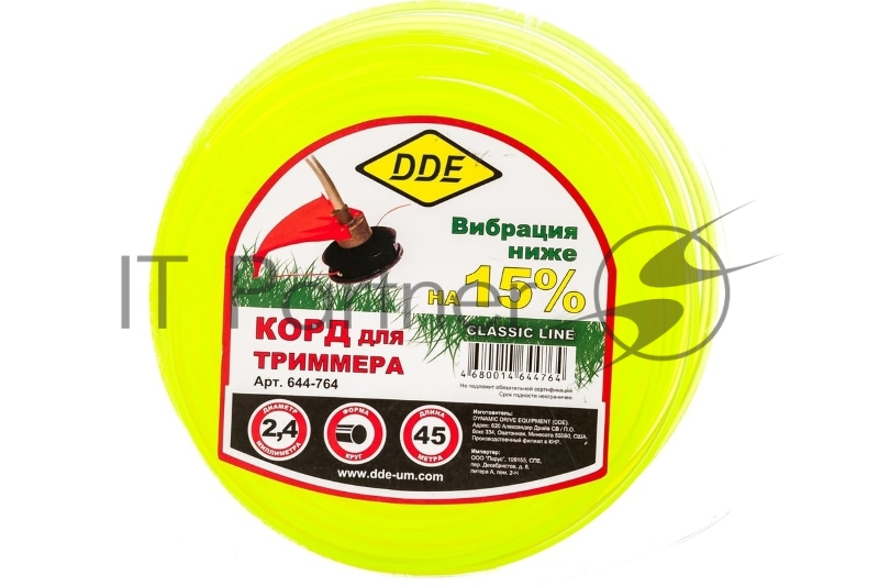 Леска для триммеров DDE 644-764 в блистере ''Classic line'' круг 2.4мм х 44м желтый