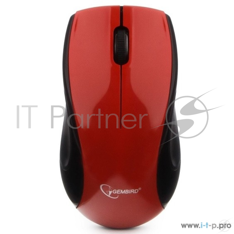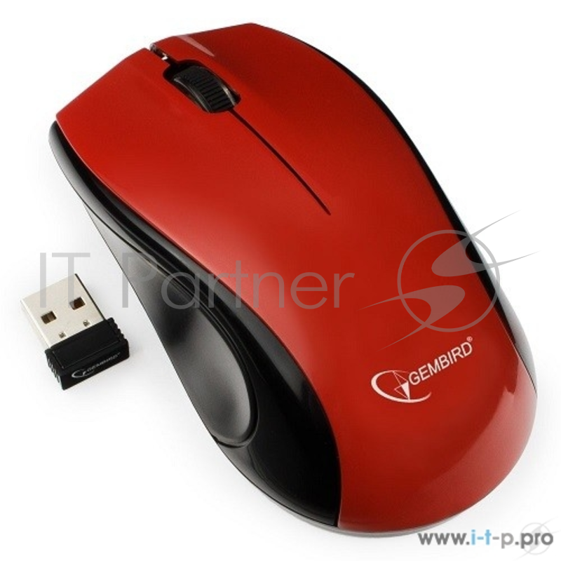 Мышь беспроводная Gembird MUSW-320-R, 2.4ГГц, красный, 2 кнопки+колесо-кнопка, 1000 DPI, батарейки в комплекте, блистер