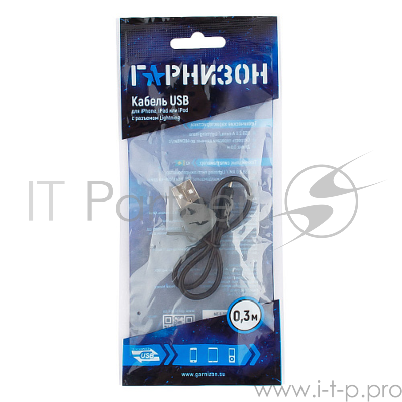 Кабель USB Гарнизон GCC-USB2-AP2-0.3M AM/Lightning, для iPhone5/6/7, IPod, IPad, 0.3м, черный, пакет