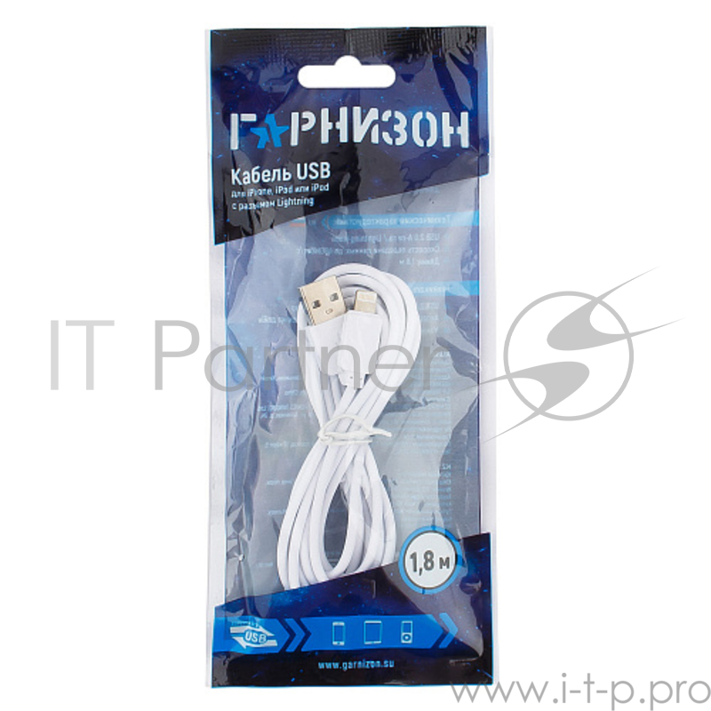 Кабель USB Гарнизон GCC-USB2-AP2-6-W AM/Lightning, для iPhone5/6/7, IPod, IPad, 1.8м, белый, пакет