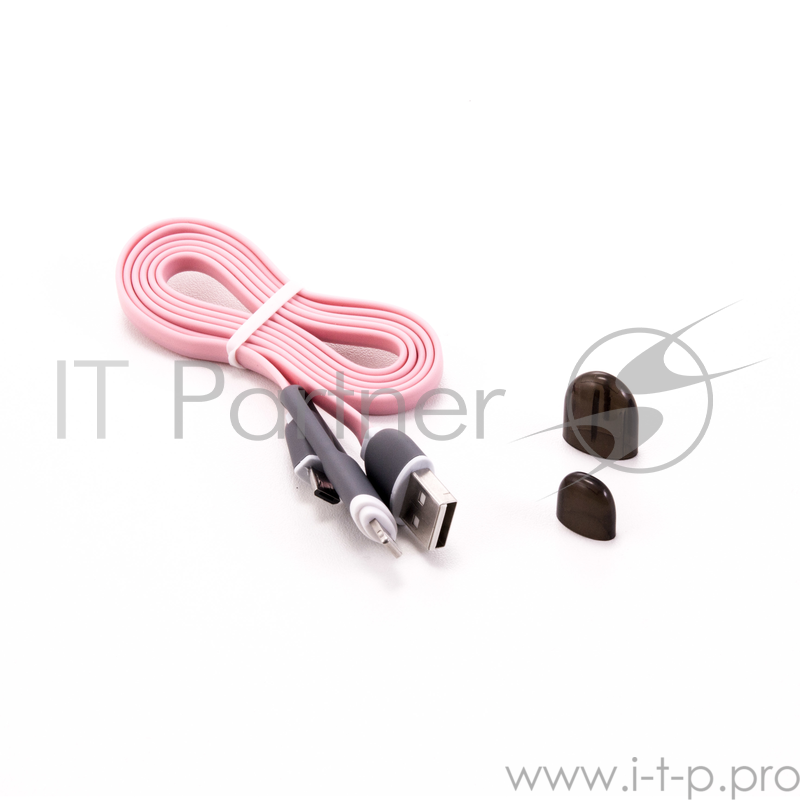 Кабель Gmini GM-FDC-220-IP6-MUSB-P, USB-microUSB+Lightning плоский, 1м, розовый