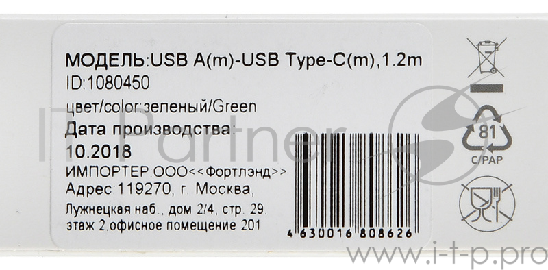 Кабель Digma USB A (m) USB Type-C (m) 1.2м зеленый