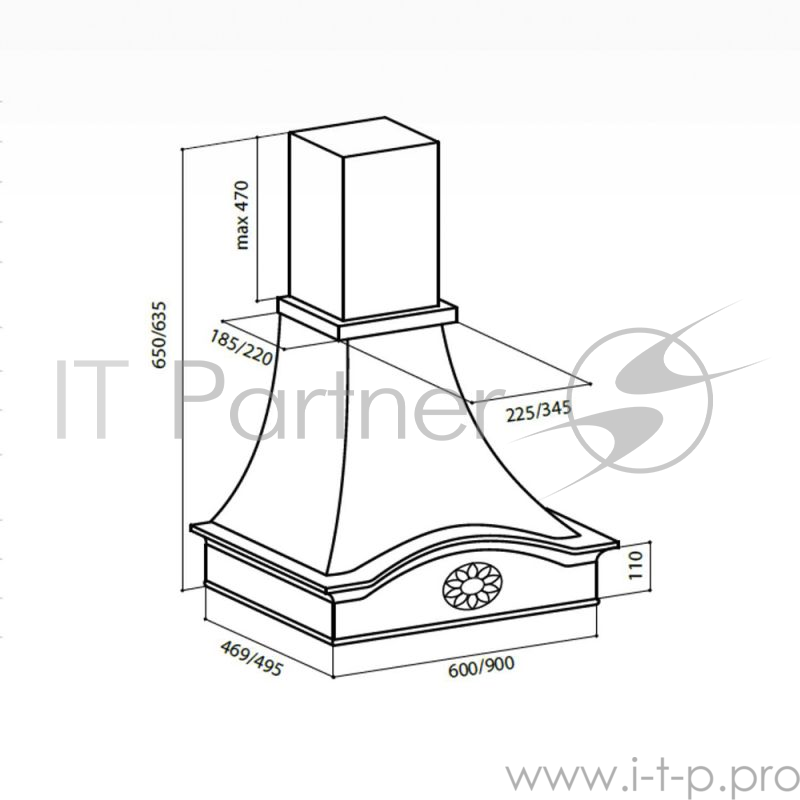 Вытяжка каминная Lex MILANO 600 cлоновая кость/бук неокрашенный управление: ползунковое (1 мотор)