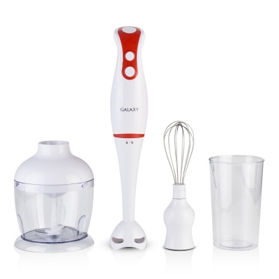 Блендерный набор Galaxy GL 2109 фиолетовый (300Вт. 2скорости, насадка-измельчитель с чашей объемом 0,75л, насадка-венчик, 2насадки-блендера (нержавеющая сталь, пластик ), мерный стакан объемом 0,5л)