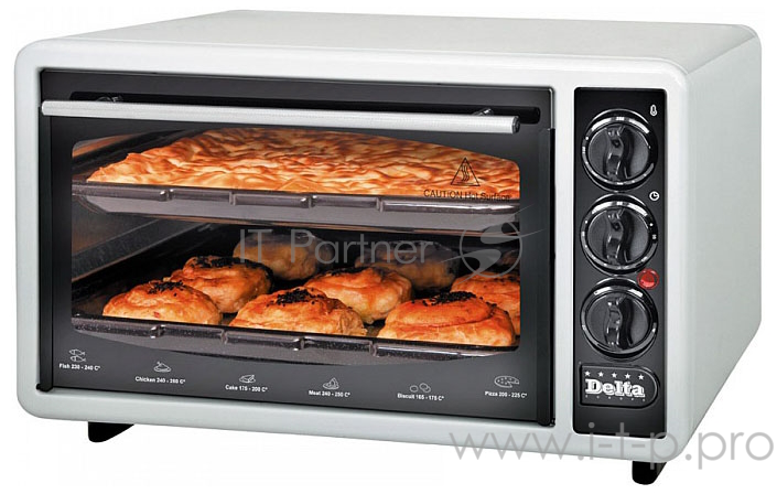 Мини-печь DELTA с термостатом D-023А (с тэном повышенной мощности,1300 Вт,40 л,2 нагреват. элемента,2 противня,решетка, таймер 90 мин.)