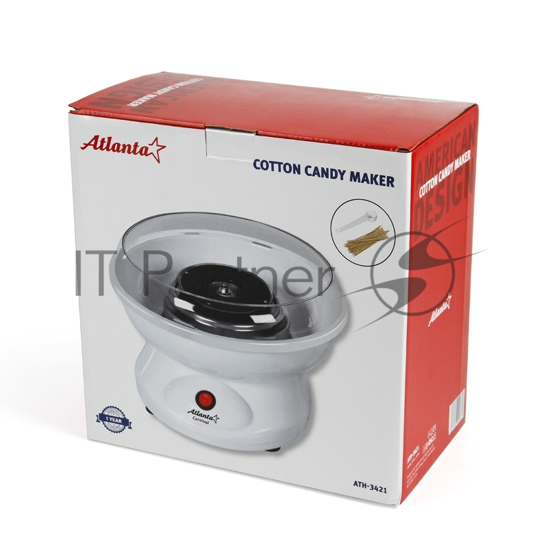 Аппарат для сахарной ваты ATLANTA, ATH-3421, 500Вт, защитный экран для безопасного использования. кварцевый нагревательный элемент, пониженный ур шума.