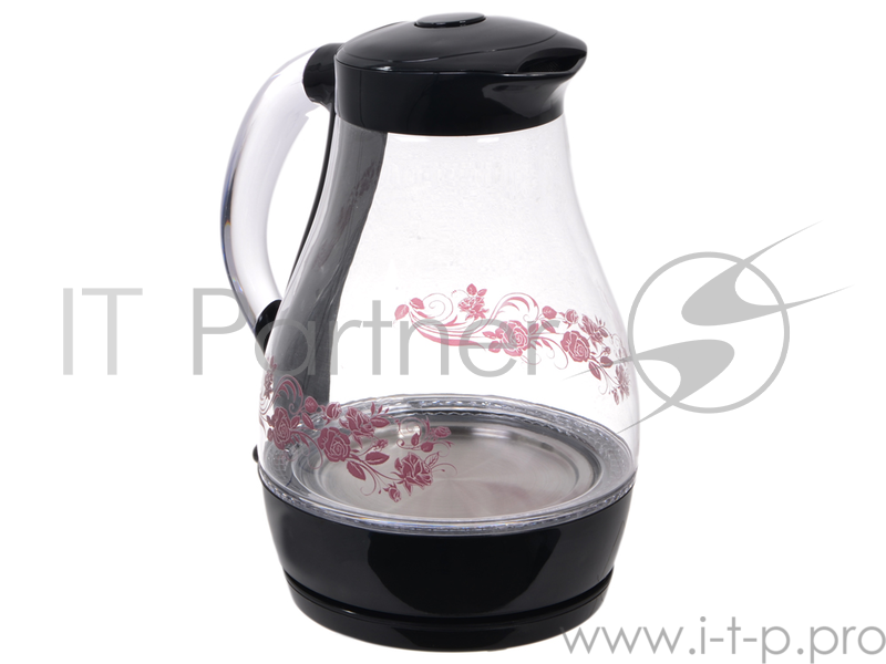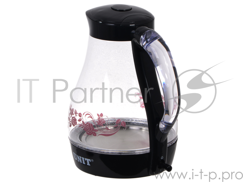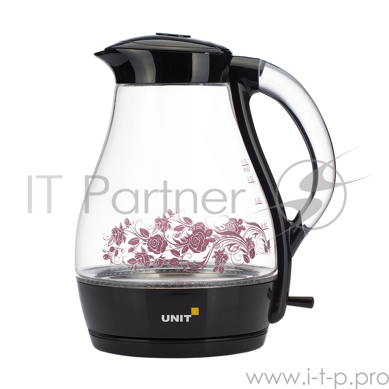 Чайник электрический UNIT UEK-258, стекло, 1.7л., 2000Вт (чёрный c рисунком)