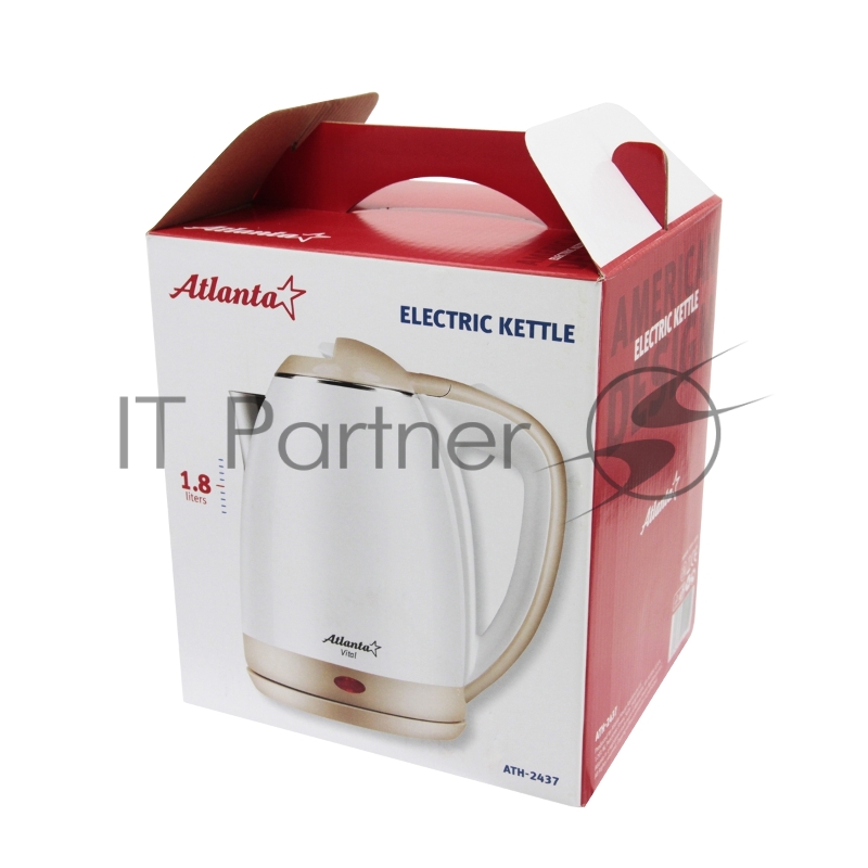 Чайник ATLANTA, ATH-2437 бел, нержавейка Металл, 1,8л, 1800Вт, белый, защита от включения без воды.