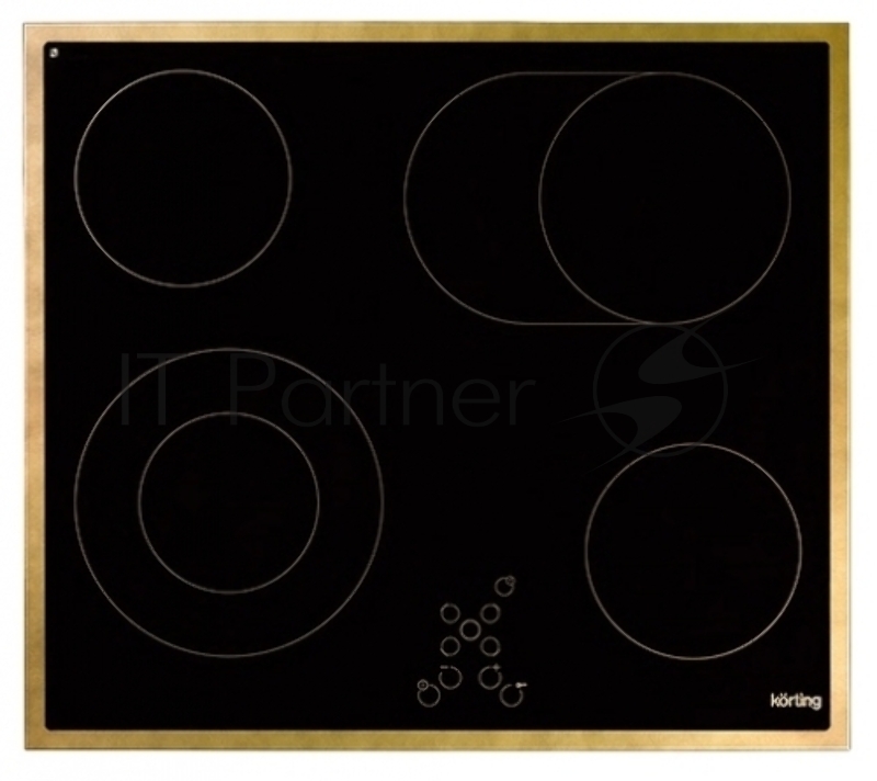 Встраиваемые электрические панели Korting 5х58x51 см, стеклокерамика, сенсорное управление, конфорка с овальной зоной расширения, черная, цвет рамки-бронза