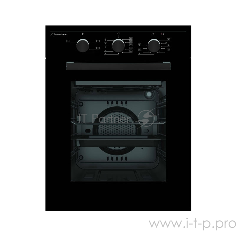 Встраиваемая электрическая духовка Schaub Lorenz 59.5х45x61 см, 45л, 4 режима работы, механические переключатели, механический таймер, панель управления-черная, черное стекло дверцы духовки