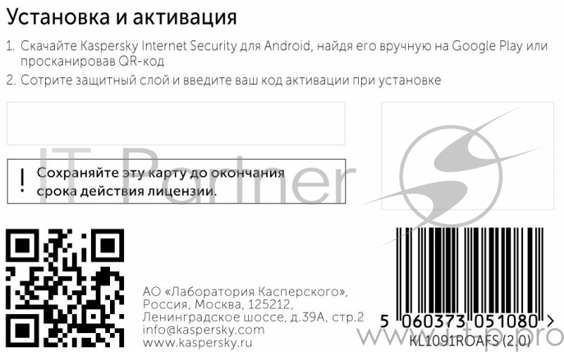 [Программное обеспечение] [KL1091ROAFS] Kaspersky Internet Security для Android Russian Edition 1 Device 1 year Base Card