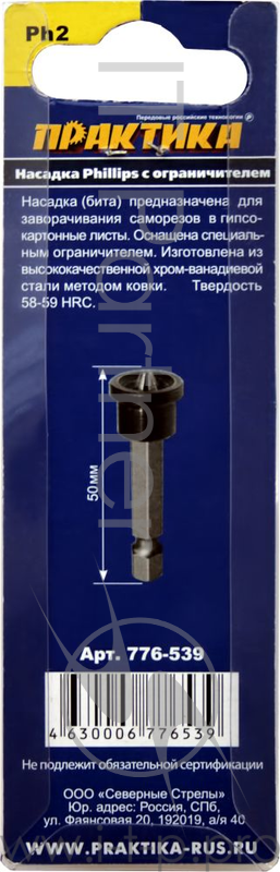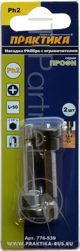 Отвертки-насадки (биты) Биты ПРАКТИКА PH-2-50мм с ограничителем Профи 2 шт в блистере 776-539