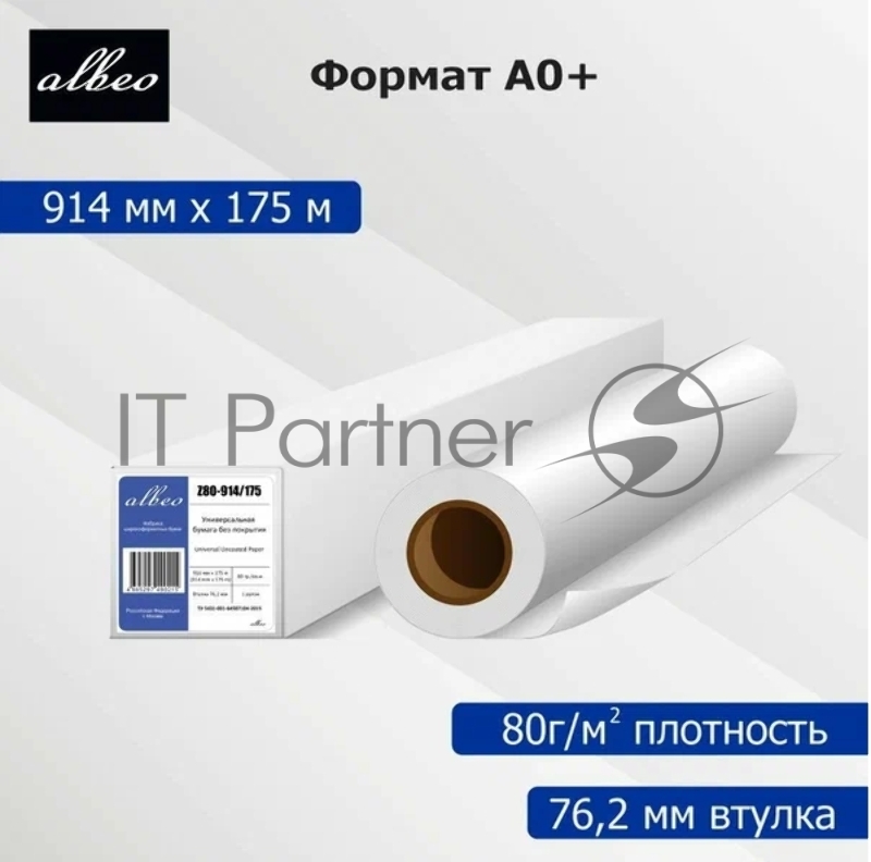 Бумага Albeo Engineer Paper, инженерная, втулка 76 мм, 0,914 х 175м, 80 г/кв.м