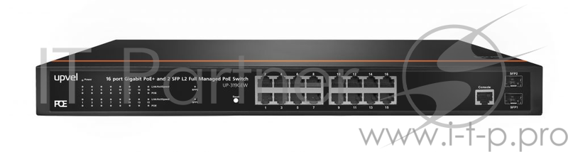 Гигабитный управляемый коммутатор 2 уровня, 16-портов PoE+ до 30Вт на порт, два Uplink порта SFP, консольный порт (крепление для монтажа в стойку, Maximum PoE Output Power: 240W)