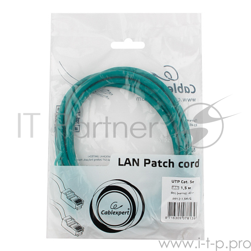 Патч-корд UTP Gembird кат.5e, 1.5м, литой, многожильный (зеленый)