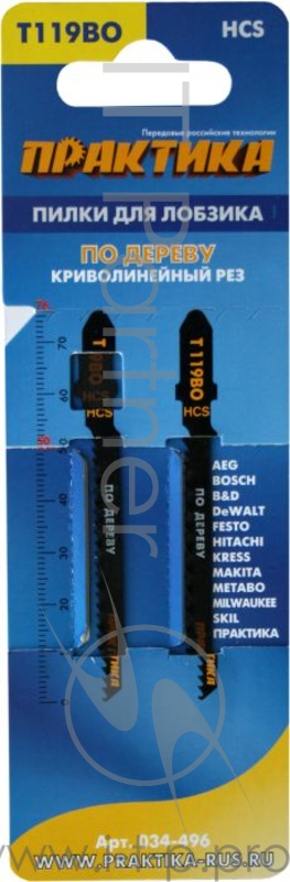 Полотно для лобзика Пилки д/лобзиков ПРАКТИКА T119BO HCS 2 шт (криволинейный рез) 034-496