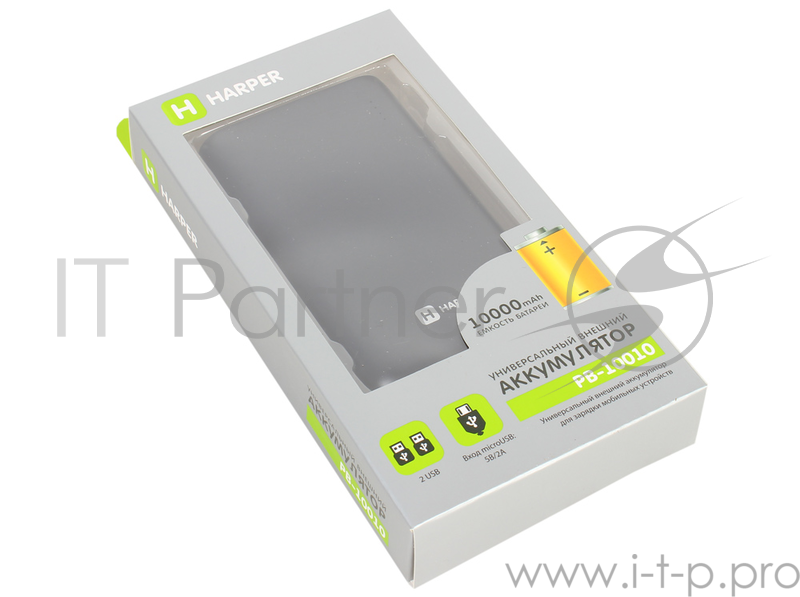 Внешний аккумулятор HARPER PB-10010 black (10000mAh/Li-Pol Выход 2 USB: 5V/1A и 5V/2,1A LED индикатор)