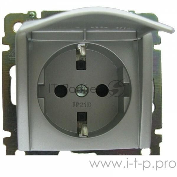 Розетка 2Р+Т нем. стд. с крышкой, алюм. Valena