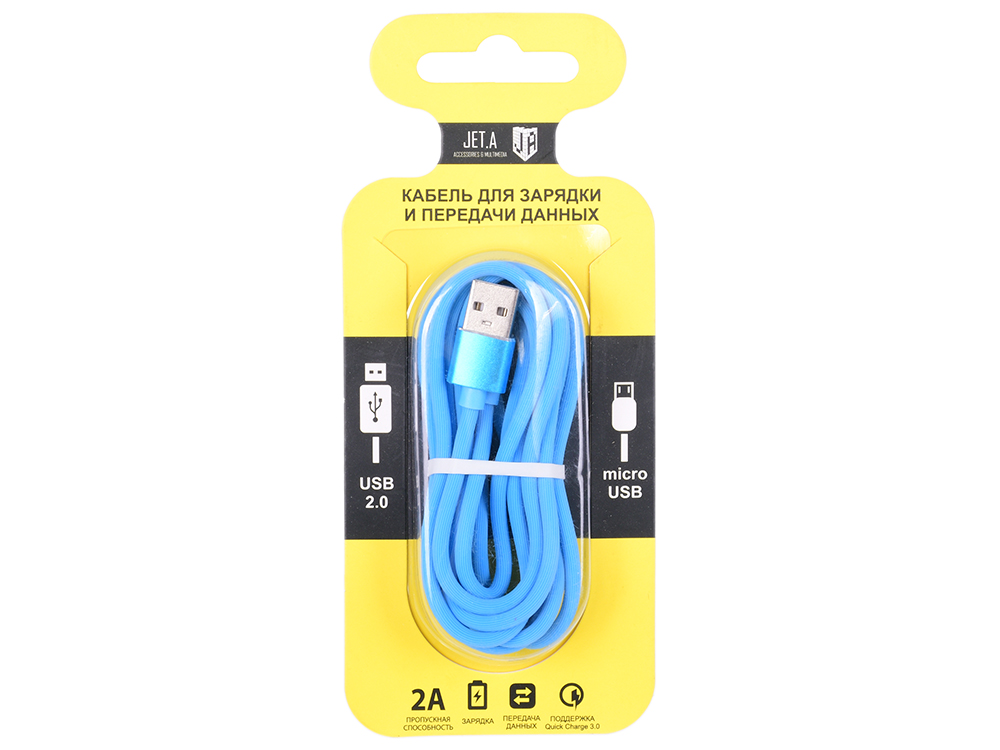 Кабель для зарядки и передачи данных Jet.A JA-DC24 2м синий (TPE, USB2.0/micro USB, QC 3.0, 2A)
