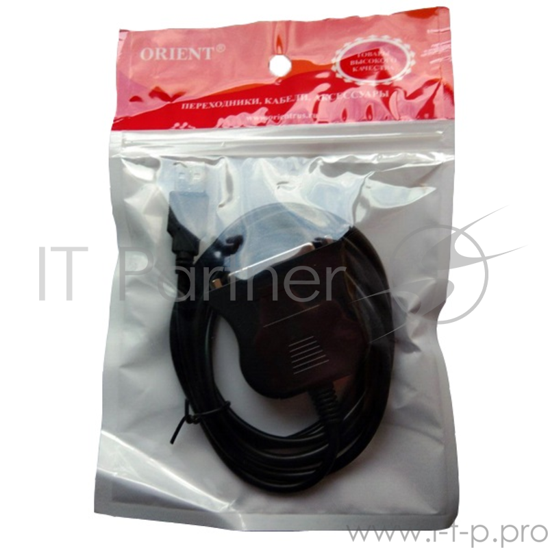 Кабель-адаптер USB Am to LPT DB25F (доп.порт LPT в систему), длина 1.8м, крепеж разъема - гайки ORIENT ULB-225N18