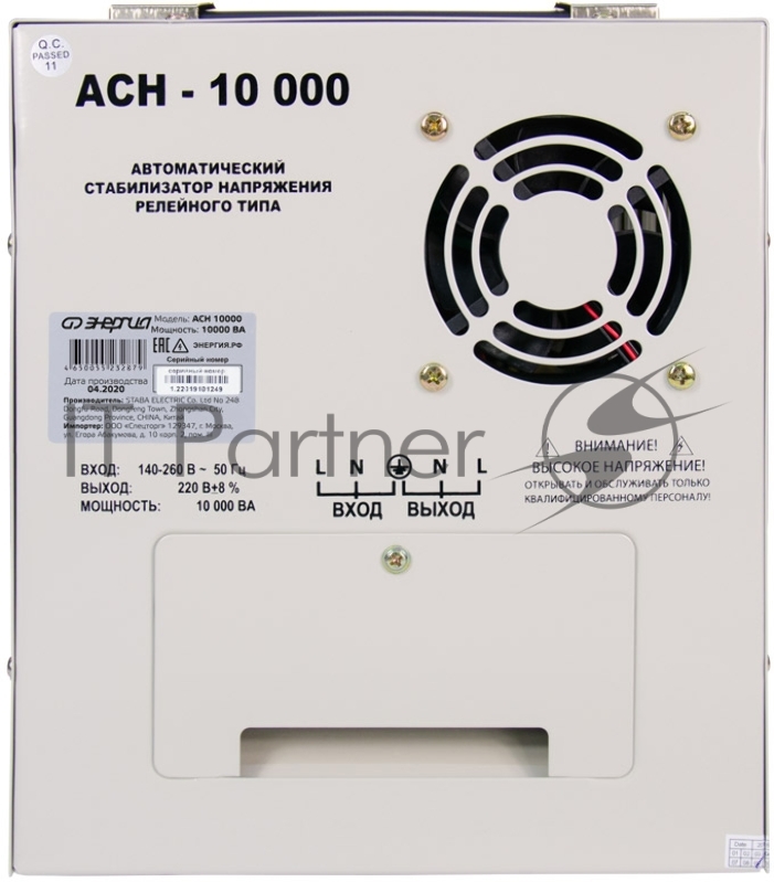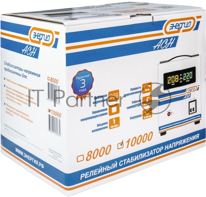 Cтабилизатор ЭНЕРГИЯ АСН-10 000 с цифр. дисплеем ВА 10000 Напряжение входа (рабочее)В 140-260 кВт7