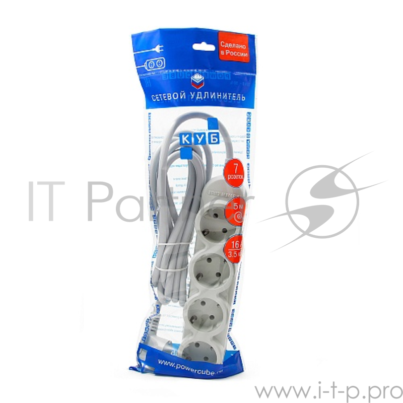 Бытовой удлинитель PowerCube, 4+3 розетки, 3500 Вт, 16 А, 5.0 м