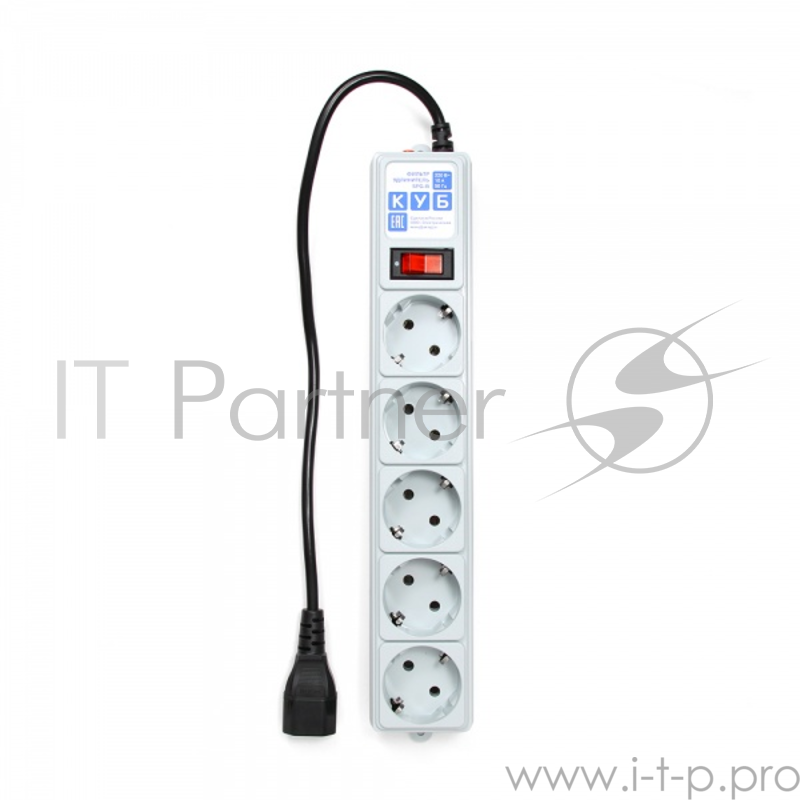 Фильтр-удлинитель Power Cube 0,5 м д/подкл. к UPS (С14), 5 розеток (серый) 10А/2,2кВт