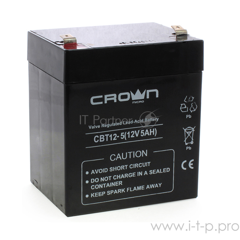 Батарея CROWN напряжение 12В, ёмкость 5 А/Ч, размеры (мм) 151х65х95, вес 1,8 кг, тип клеммы - F2, тип АКБ - свинцово кислотная с загущеным электролитом в гель, срок службы 6 лет CROWN Battery voltage 12V, capacity 5 A / W, dimensions (mm) 151h65h95