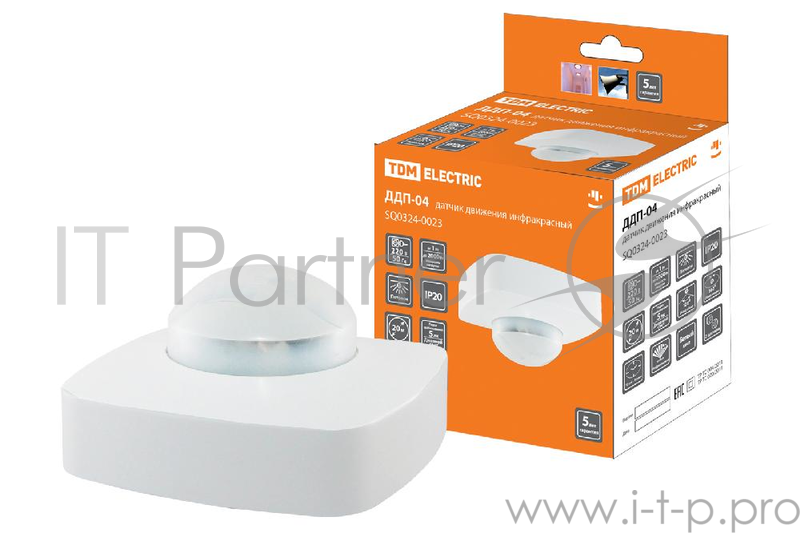 Датчик движения ТДМ SQ0324-0023 2000Вт 10-1800с 4х20м 3+лк 120сбоку+360сверхугр IP20