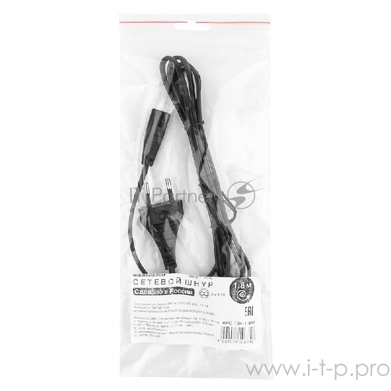 Кабель Кабель питания аудио/видео Gembird 1.8м, 2-pin, VDE, черный, пакет PC-184/2-1.8M