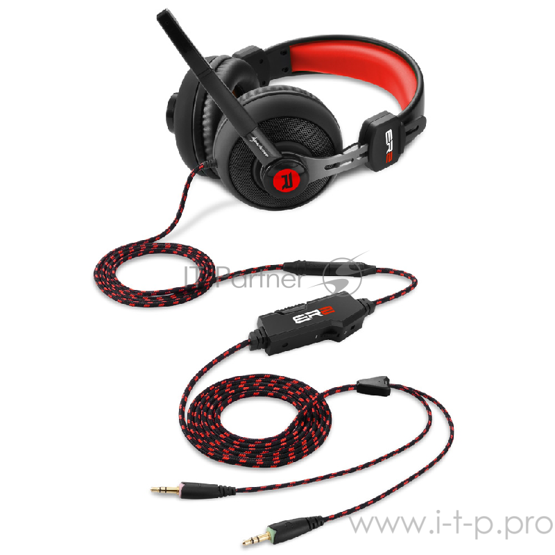 Игровая гарнитура Sharkoon Rush ER2 чёрно-красная (Jack 3.5 мм, 40 мм, ПУ)