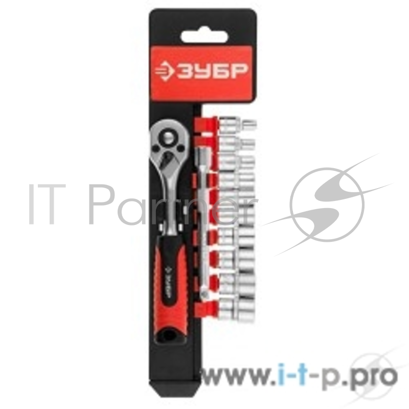 Наборы Набор ЗУБР "МАСТЕР" (27645-H12): Торцовые головки (1/4") на пластиковом рельсе, трещотка, удлинитель, Cr-V, 4-13мм, 12 предметов