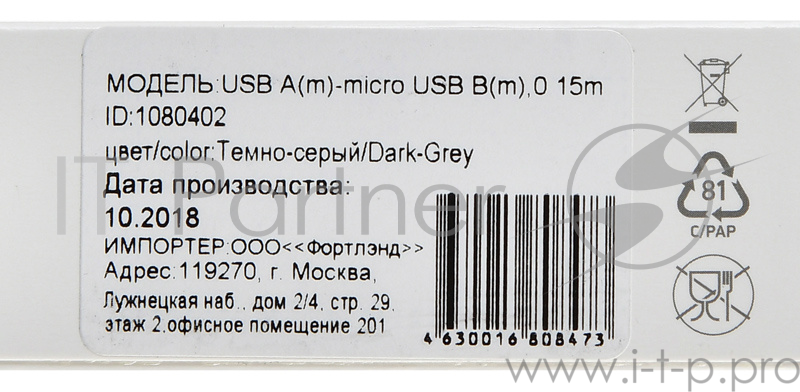 Кабель Digma USB A (m) micro USB B (m) 0.15м черный