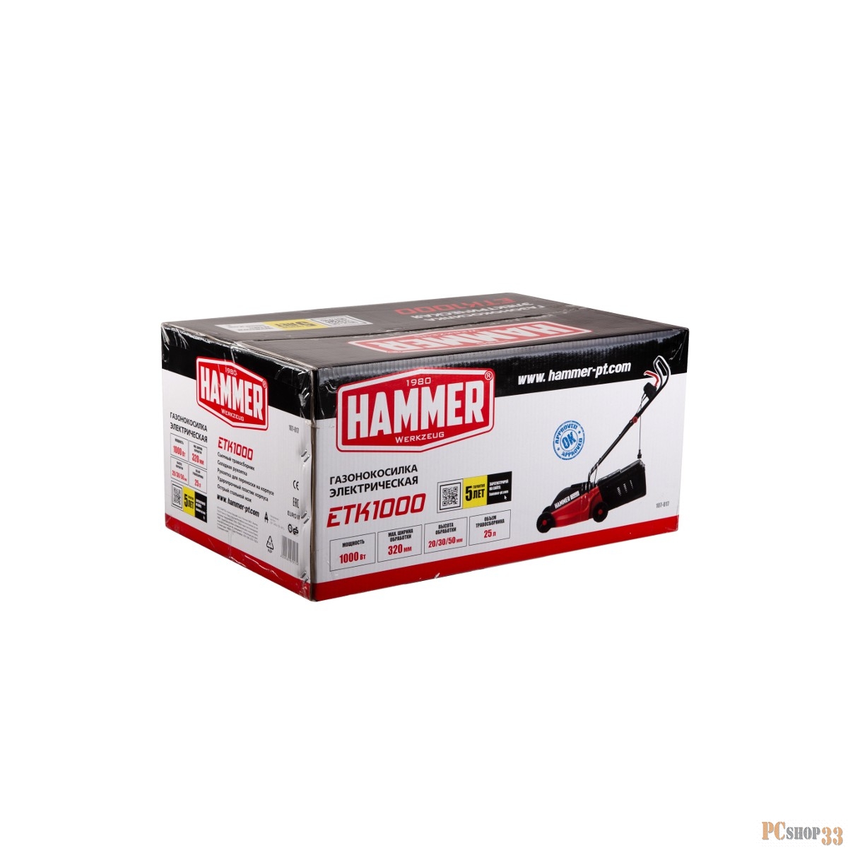 [Газонокосилка] Hammer ETK 1000 Газонокосилка электро [576787] { 1000Вт шир.32см выс.25-55мм травосборник 25л }