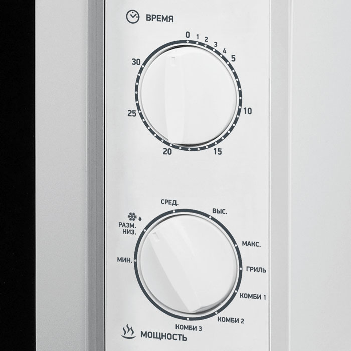 Особенности: 5 уровней регулировки мощности микроволн, режимы деликатной разморозки, таймер на 30 минут и звуковой сигнал всегда известят об окончании процесса приготовления.
