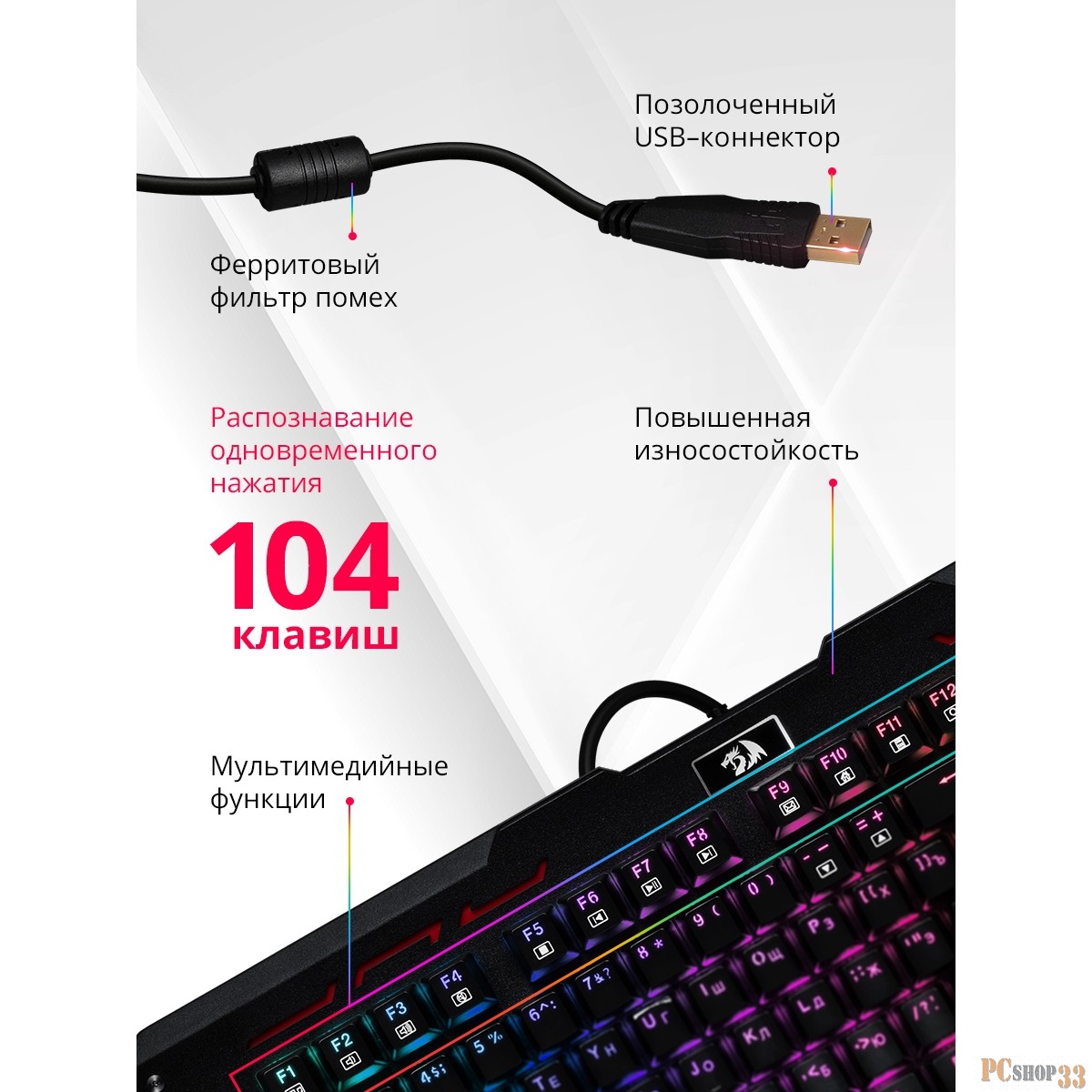 Заказать на сайте игровую компьютерную клавиатуру REDRAGON 74904 в Коврове. В наличии в магазине "Ваш Компьютер". Ковров пр-т Ленина 20.