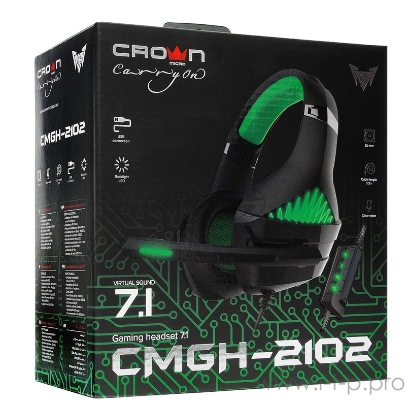 Гарнитура игровая CROWN CMGH-2102 Black&green