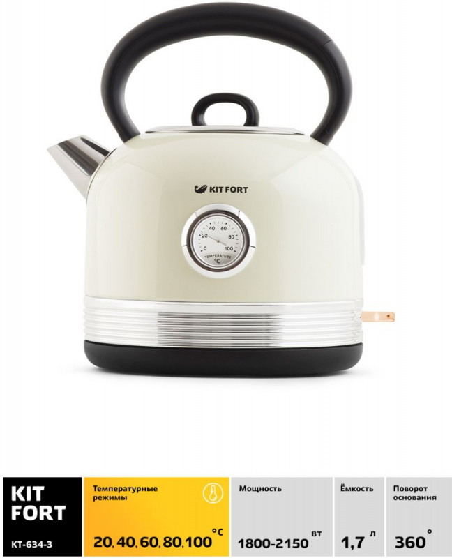 Чайник электрический Kitfort КТ-634-3 бежевый