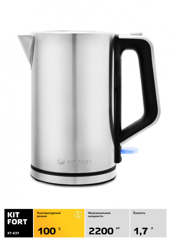 Чайник электрический Kitfort КТ-637 1.7л. 2200Вт серебристый (корпус: нержавеющая сталь/пластик)