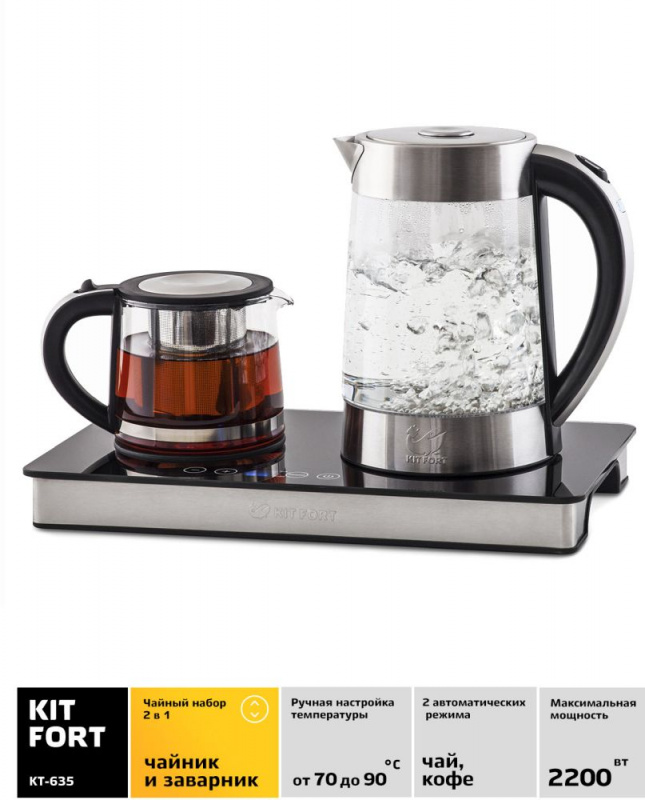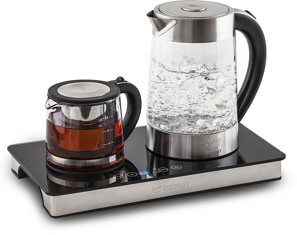 Чайный набор Kitfort КТ-635 1.7л. 2200Вт черный (корпус: стекло)
