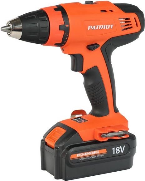 Дрель-шуруповерт аккумуляторная PATRIOT BR 180 [180301450] { две батареи NiCd,18V,1.5 Ah, 39 Нм, большой кейс, зарядка за 1 час, комплект бит и сверл }