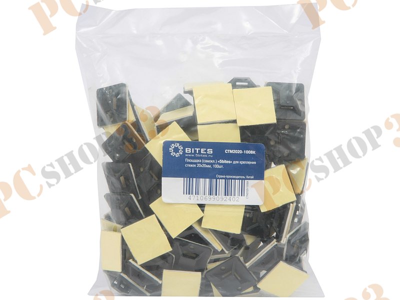 Фурнитура площадка (самокл.) для крепления стяжек 20x20мм 5bites CTM2020-100BK, черный (100шт./уп.)