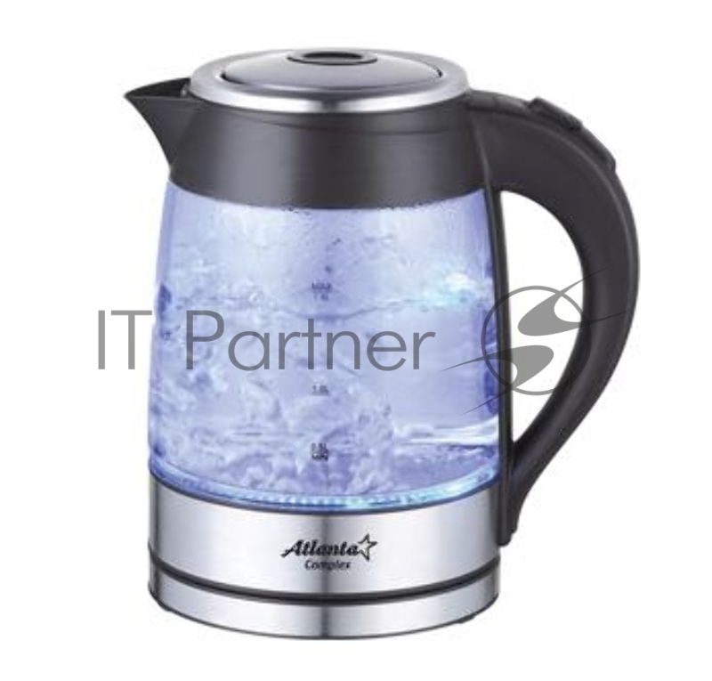 Чайник ATLANTA, ATH-2462 черный, стекло Стекло, 1,8л, 2000Вт, иллюминация, поворот на подставке на 360С, фильтр от накипи.