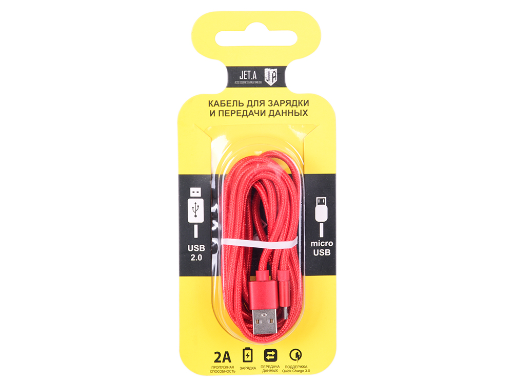 Кабель для зарядки и передачи данных Jet.A JA-DC22 2м красный (в оплётке,USB2.0/microUSB,QC 3.0, 2A)