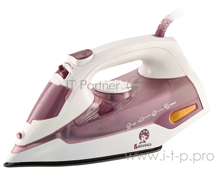 Утюг ВАСИЛИСА У4-2000 белый с темно-розовым (Мощность 2000Вт. Подошва с антипригарным покрытием. Терморегулятор. 3 рабочих режима: сухое глажение, отпаривание, разбрызгивание воды. Регулировка степени отпаривания. Вертик. отпарив-е. Паровой удар. Сам