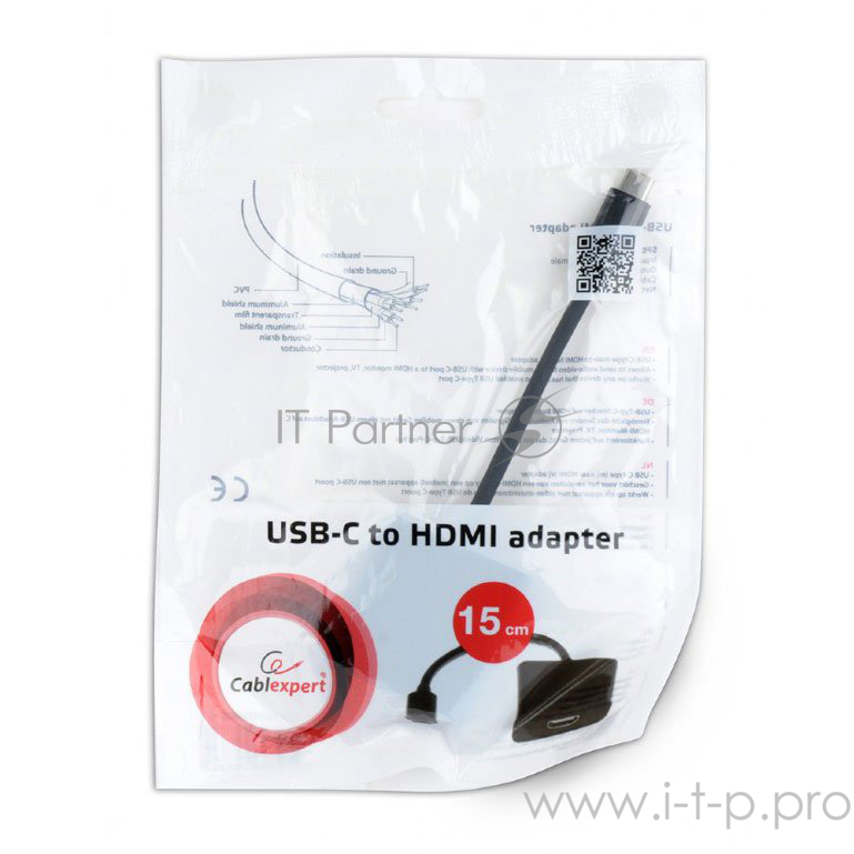 Переходник Cablexpert Переходник USB Type-C/HDMI, 15см, пакет (A-CM-HDMIF-01)