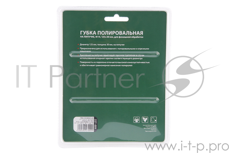 Губка полировальная Hammer Flex 227-009 PD M14 PV 125х30 мм для финишной обработки, поролоновая