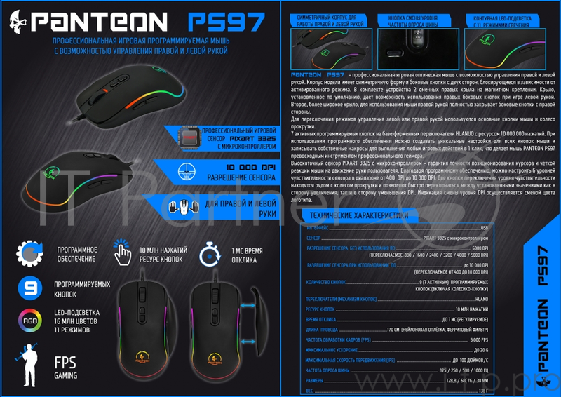 Купить игровую компьютерную мышь Jet.A Panteon PS97 в Коврове. Заказать на сайте. В наличии в "Ваш Компьютер". Ковров пр-т Ленина 20.
