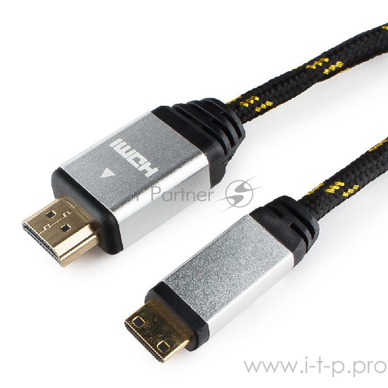 Кабель Konoos Кабель HDMI- miniHDMI KCP-HDMICnbk, 1м, v1.4, 19M/19M, алюмин. корпус, нейлоновая оплетка, черный, позол.разъемы, коробка
