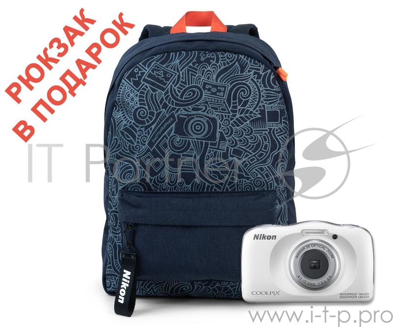 Фотоаппарат Nikon Coolpix W150 White Backpack KIT <13.2Mp, 3x zoom, 2.7", SDXC, Влагозащитная, Ударопрочная> (водонепроницаемый 10 метров)